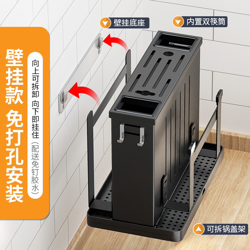 (Wall-mounted) wire drawing silver (2 chopstick cylinders 4 hooks) (wall-mounted) elegant black (2 chopstick cylinders 4 hooks) (wall-mounted section) wire drawing silver (2 chopstick cylinder cover racks)