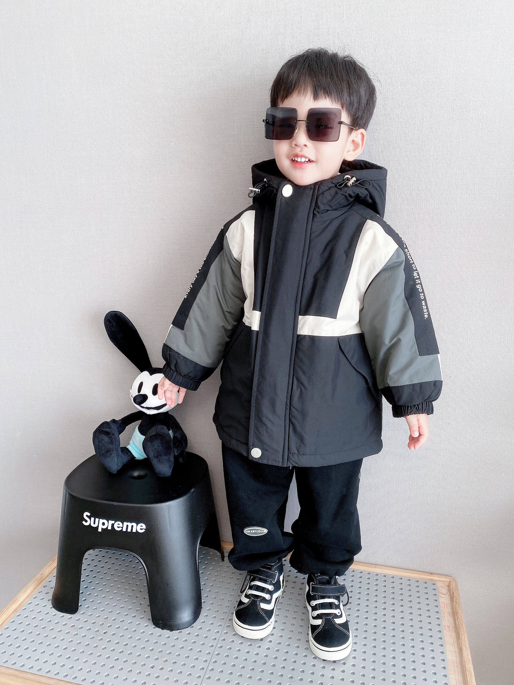 (Color-blocking cotton clothes) Children's autumn and winter warm hooded mid-length cotton jacket