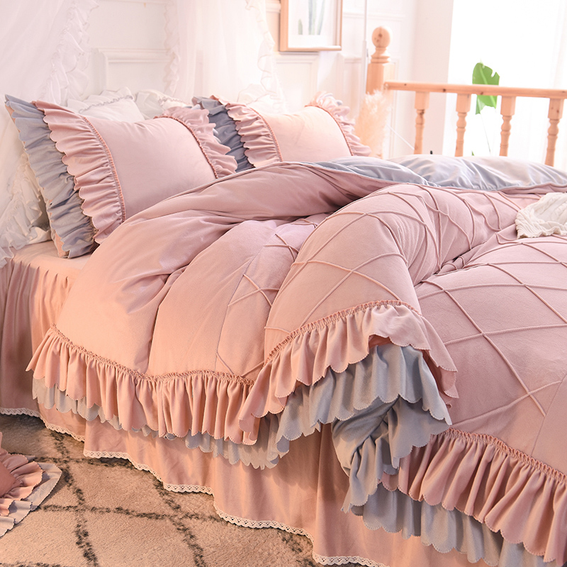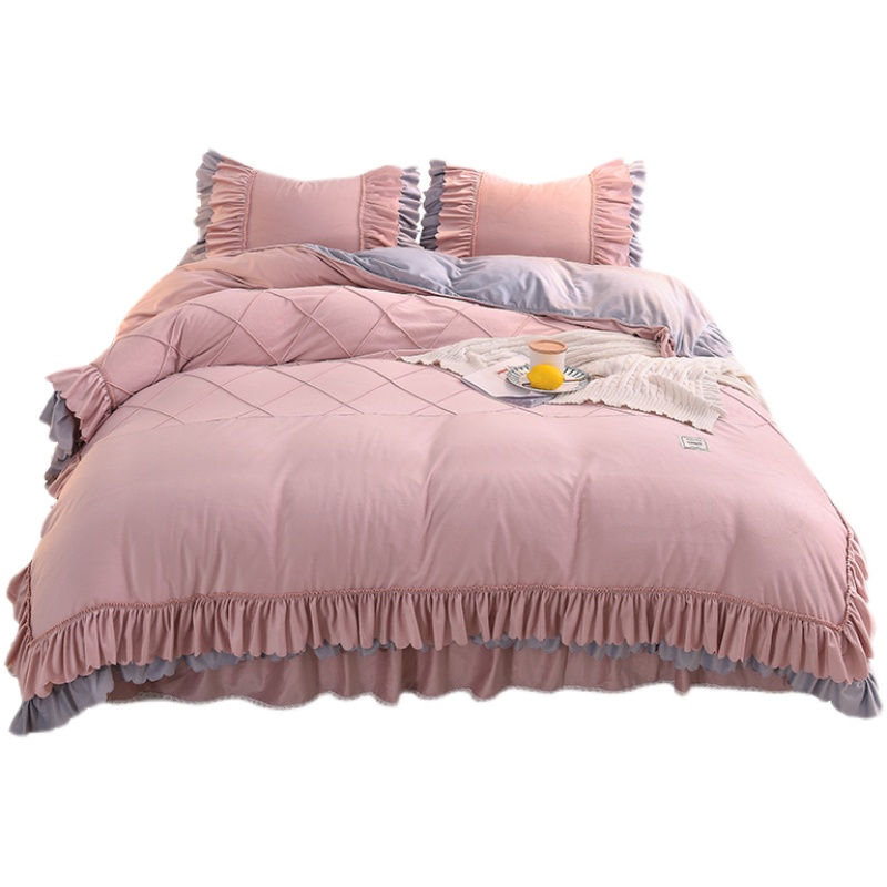 Winter crystal suede plus suede beds 4 pieces Thickened Coral Suede Bed Skirt Style Quick Warm Two-sided Suede Quilt Cover Flannel
