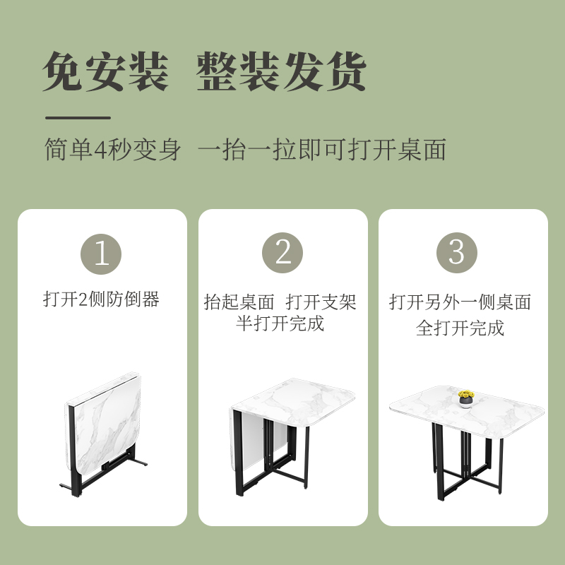 Easy folding table small household ultra-thin dining table without installing rectangular table multi-function scaling table household table