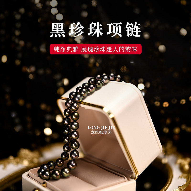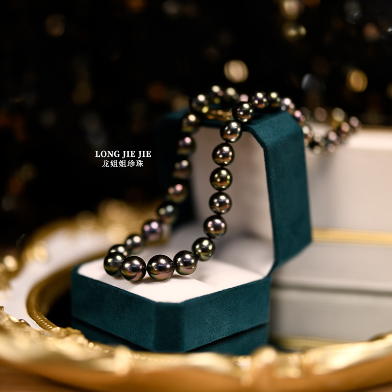 8-11mm Tahiti Black Pearl necklace with a black pearl necklace