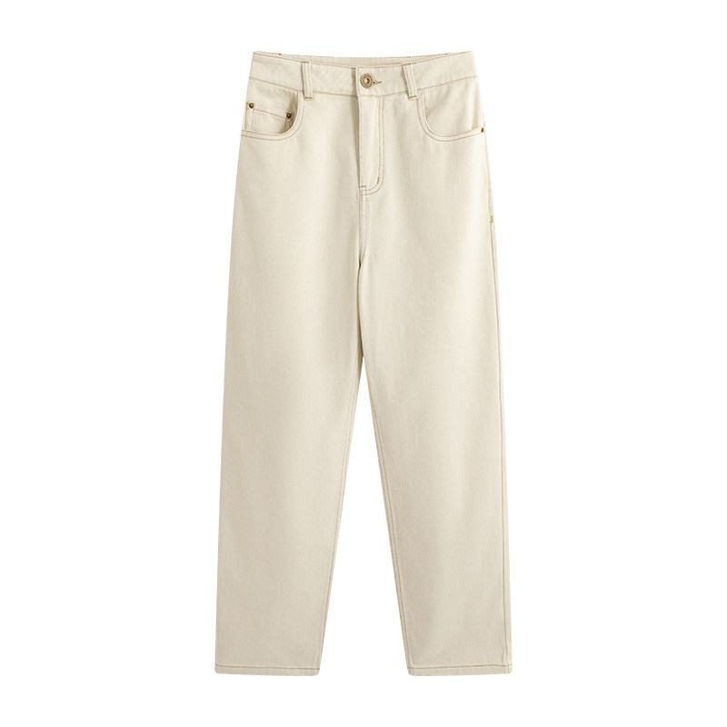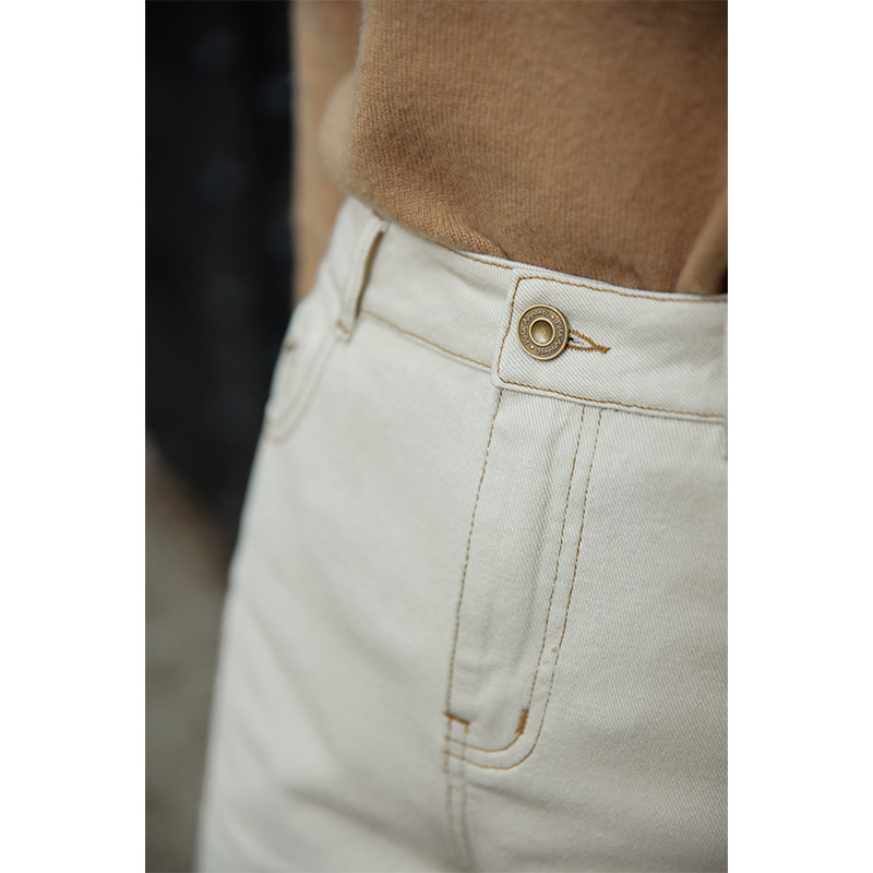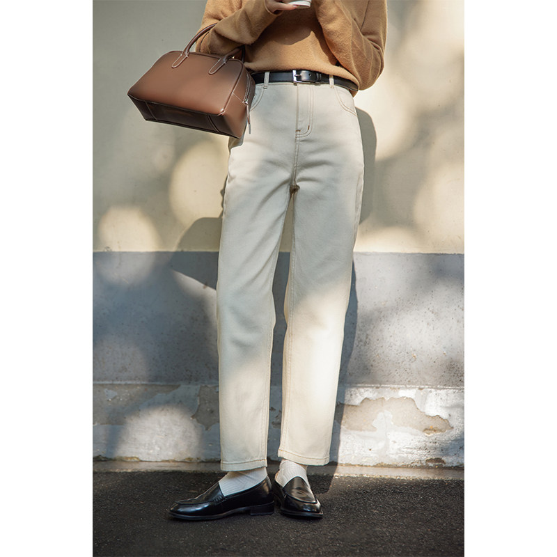 Beautiful emperor white full cotton plus suede high waist jeans female winter new 100 hitch slim straight drum pants