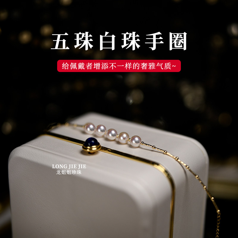 Japanese akoya natural seawater pearl bracelet 18 k gold feminine luxury light - luxury small round pearl bracelet