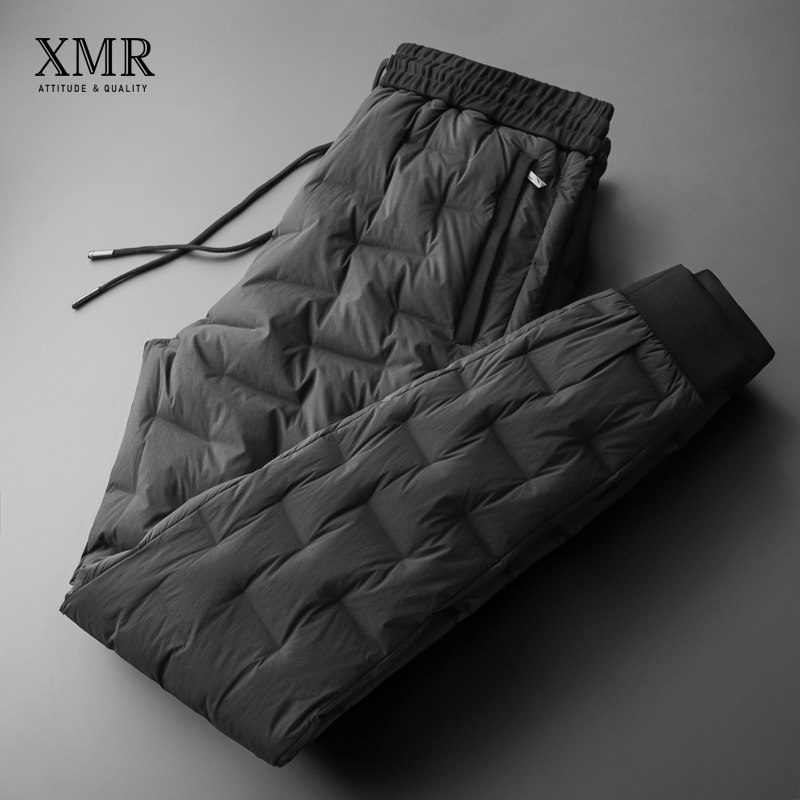 Northeast Thickened Down Pants Men's Winter Outwear Warm White Duck Suede Pants New Middle Aged Dad Men Casual Pants