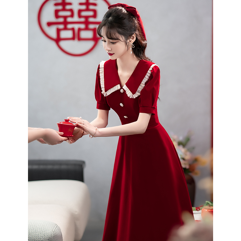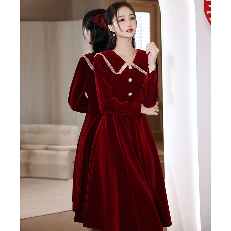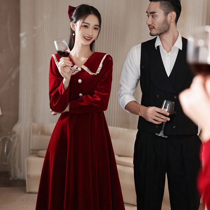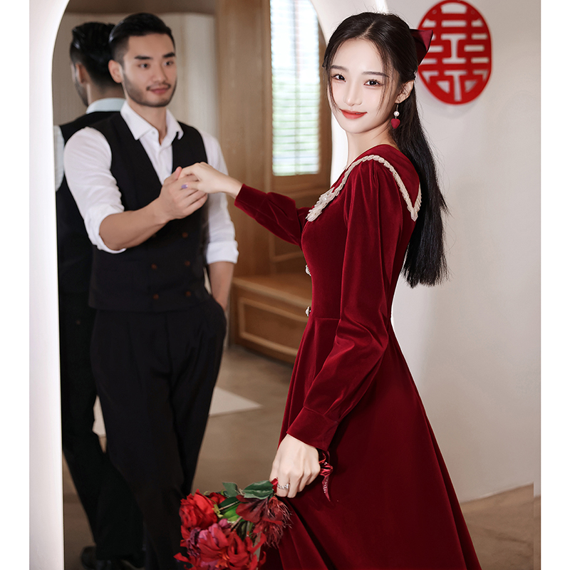 Toast bride long sleeve small man can usually wear engagement dress red dress girl returning in autumn