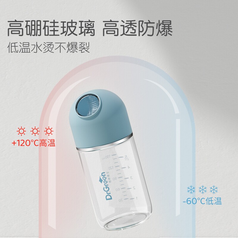 Dr. Green baby beginner wide calibre glass feeding bottle new child anti-flatuls gas choking breastmilk for month 150ml