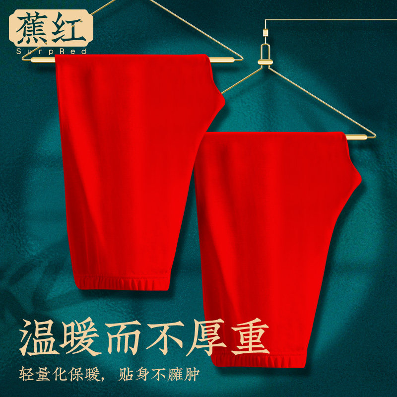 Red seven - point pants Developer warm trousers and five - pants marriage anti - walking light life - year plus 7 - point shorts