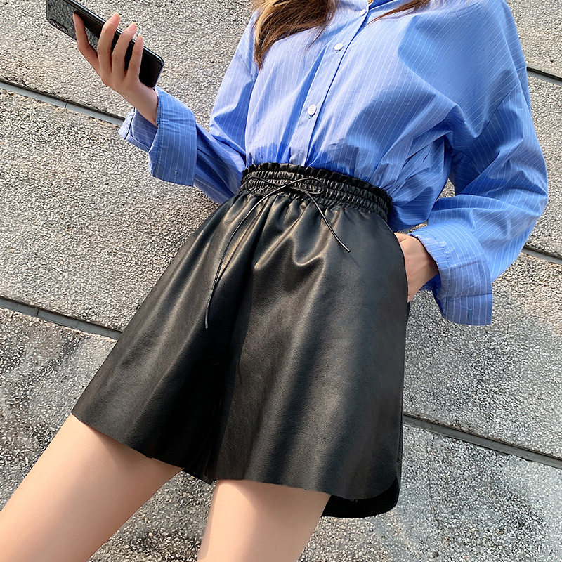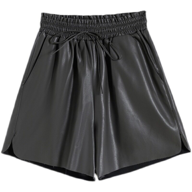 European station leather shorts women's spring autumn and winter 2022 new high-waisted small men wearing wide-leg boots and pants large size trend