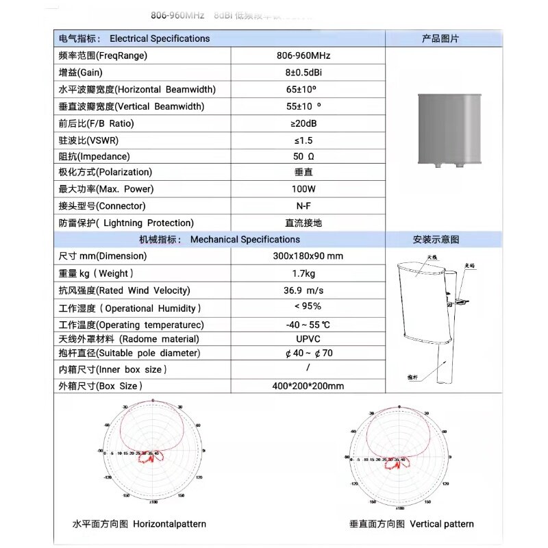 800-960MHZ 800-960MHZ 1710-2700MHZ single polarized sector antenna 0-6 m base station flat antenna-Taobao