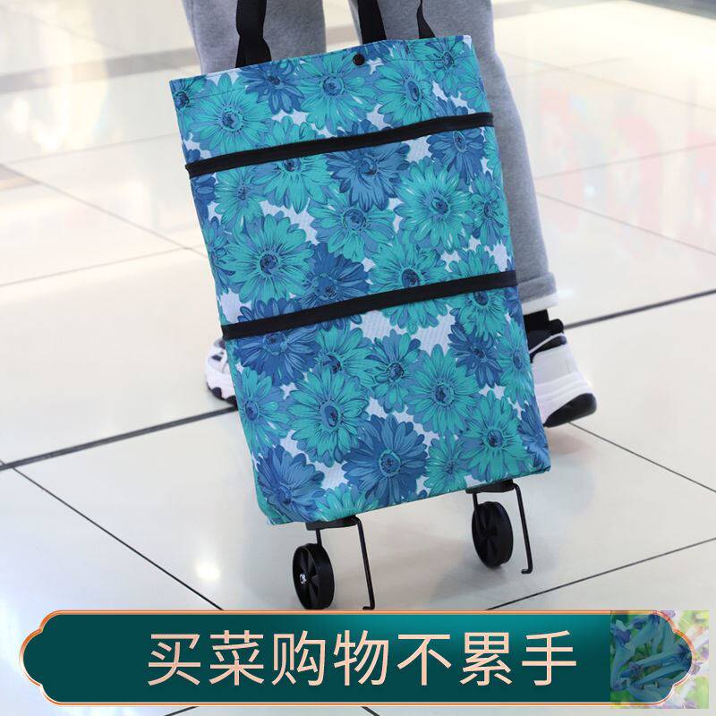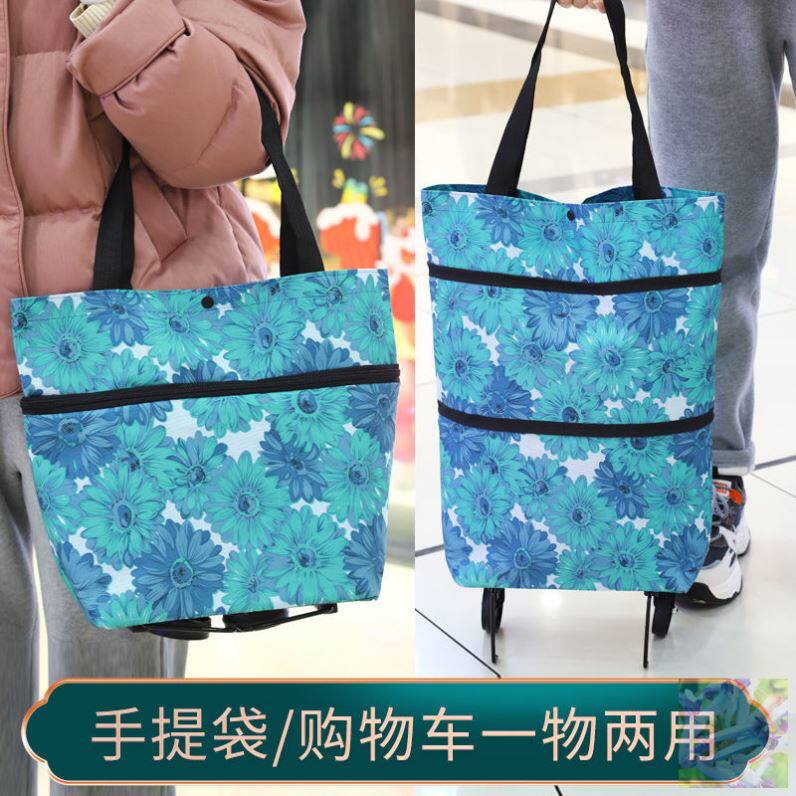 Eco-friendly shopping bag telescopic pack can be folded and environmentally friendly portable supermarket with tug wheel to buy food unwoven cloth small pull car mother