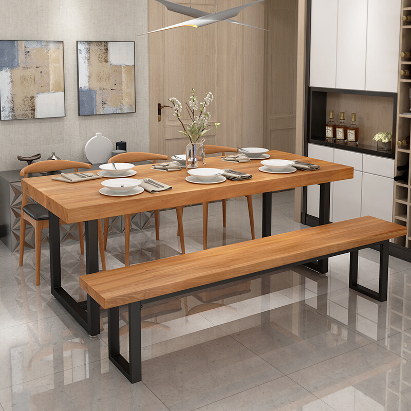 LOFT solid wood wrought iron bench office meeting room long stool leisure home dining table and chairs dining table matching long