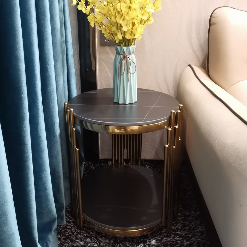 Stainless Steel Light Lavish Side Several Living-room Sofa Rockboard Corner A Few Metal Round Table Rear Modern Minima Casual Side Cabinet