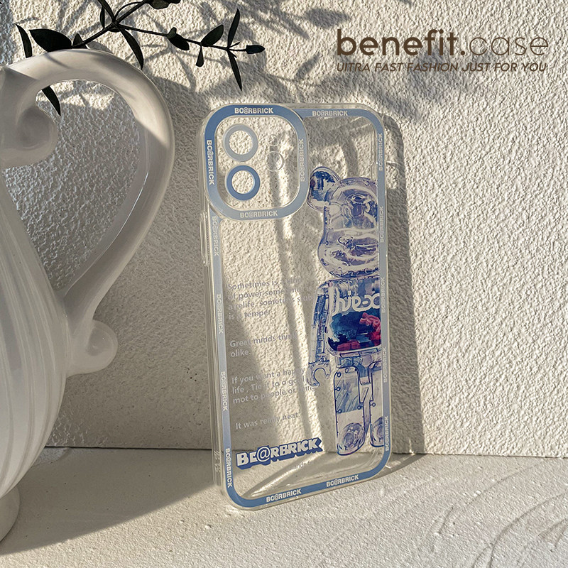 Benefit Tide Card Creative Violent Bear Transparent Ice Blue Apply Apple 13promax Mobile Phone Protection Shell iphone12mini Protective Sleeve Xsmax Anti-Breaking Xr Silicon