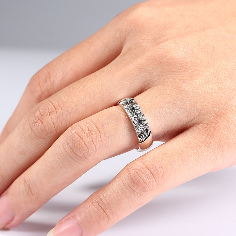 925 Pure Silver Ring Men's Life Year Tiger Original Handmade Retro Silver Accessories Individuality Small Crowdring Ornament Tide Woman