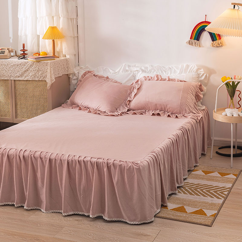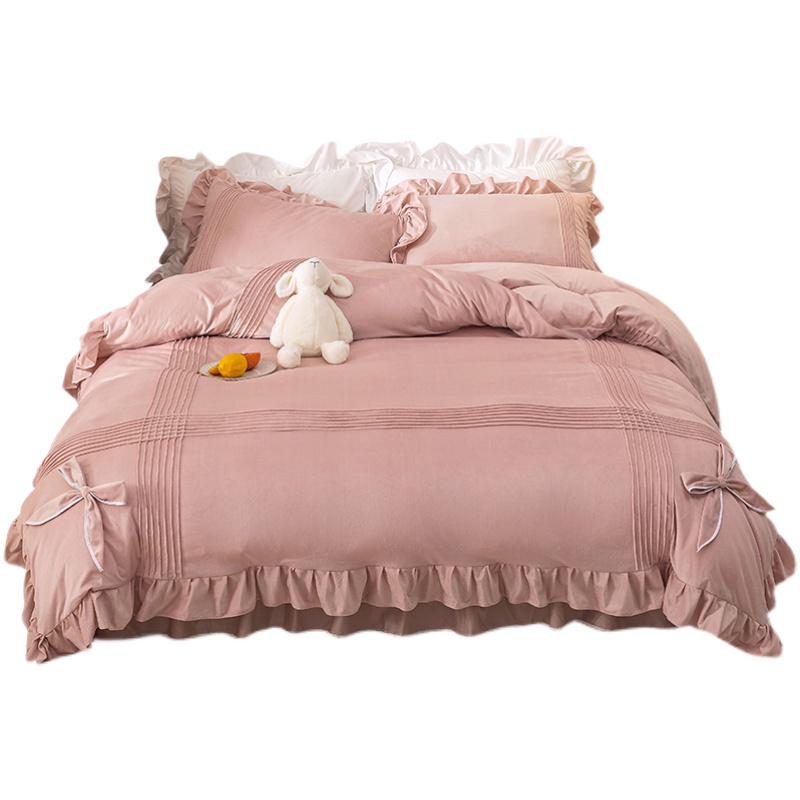 Winter thickened crystal velvet bed four-piece warm coral velvet double-sided quilt cover plus velvet bed skirt flannel