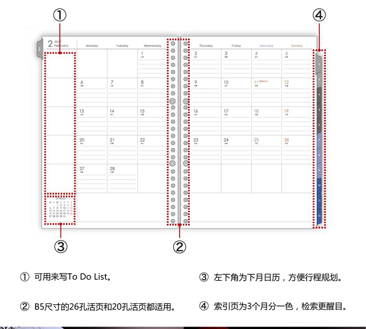 Personal monthly diary six-hole loose-leaf personal monthly diary calendar six-hole loose-leaf personal biweekly six-hole loose-leaf personal weekly diary
