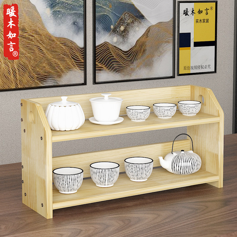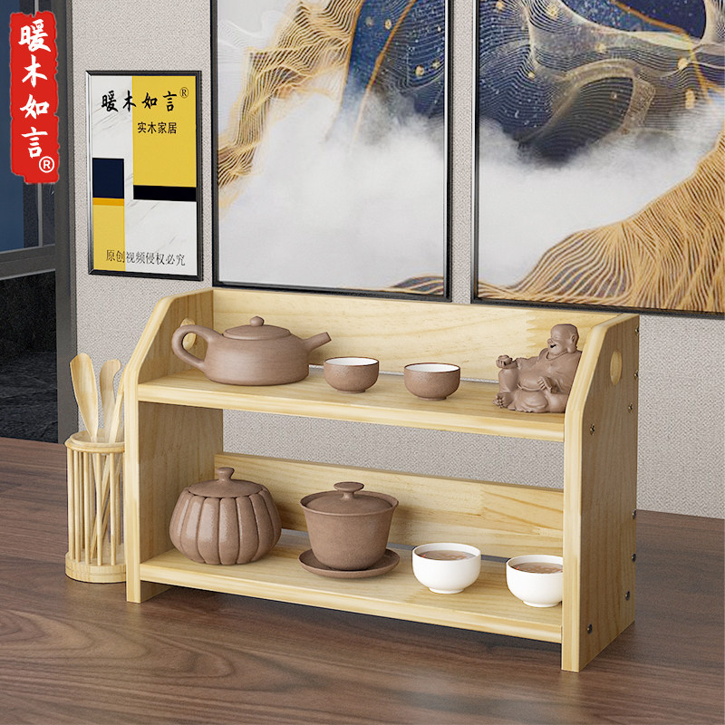 Desktop rack table purple sand pot tea set bogu rack small cup storage rack simple solid wood warm wood like words