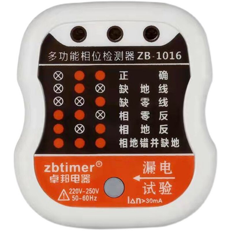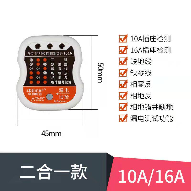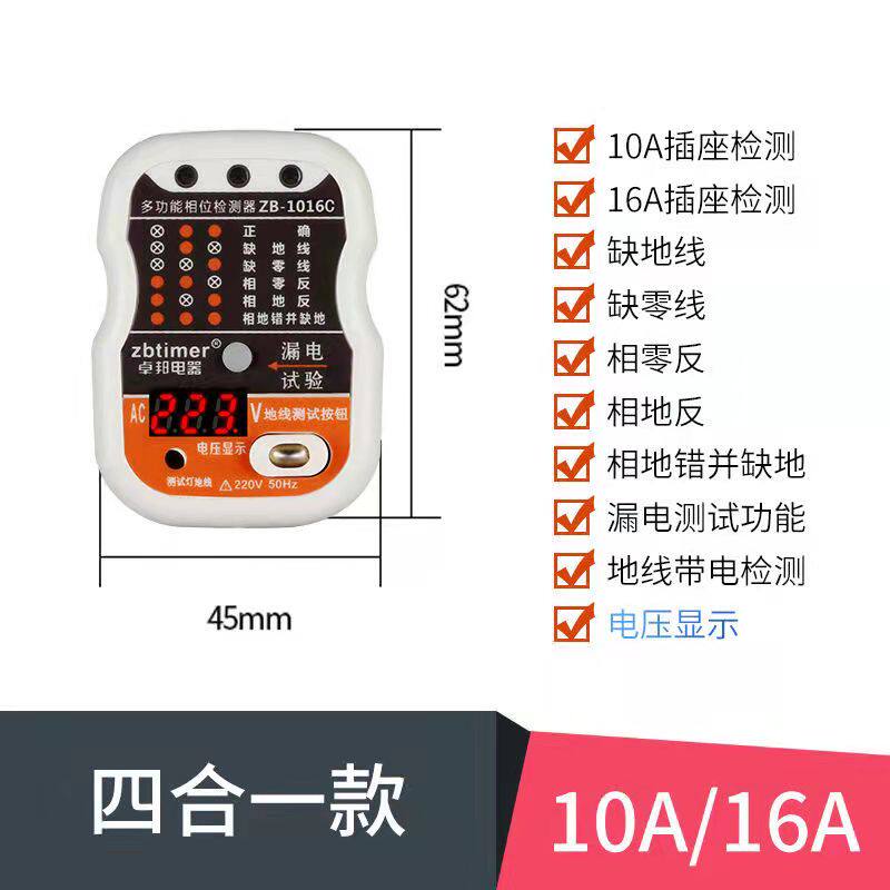 Phase detector 10A 16A universal multi-function digital display voltage room inspection electrical socket power detector