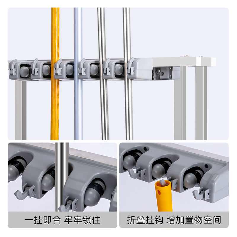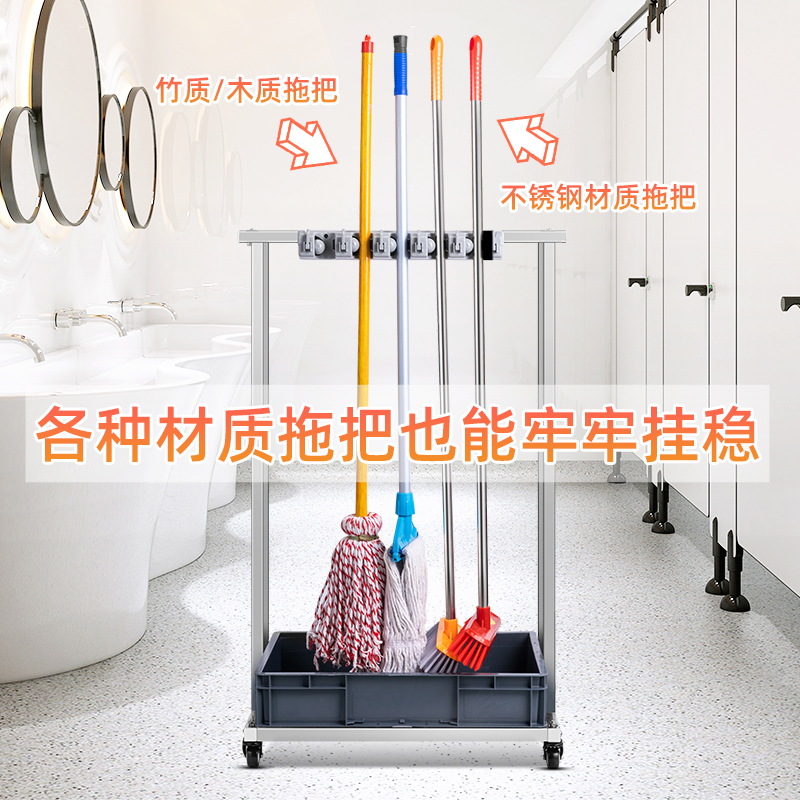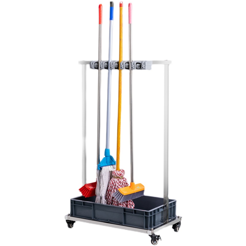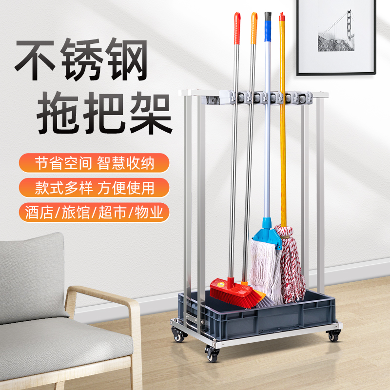 Mobile floor mop rack stainless steel rack put broom mop hanging shelf balcony cleaning tool storage
