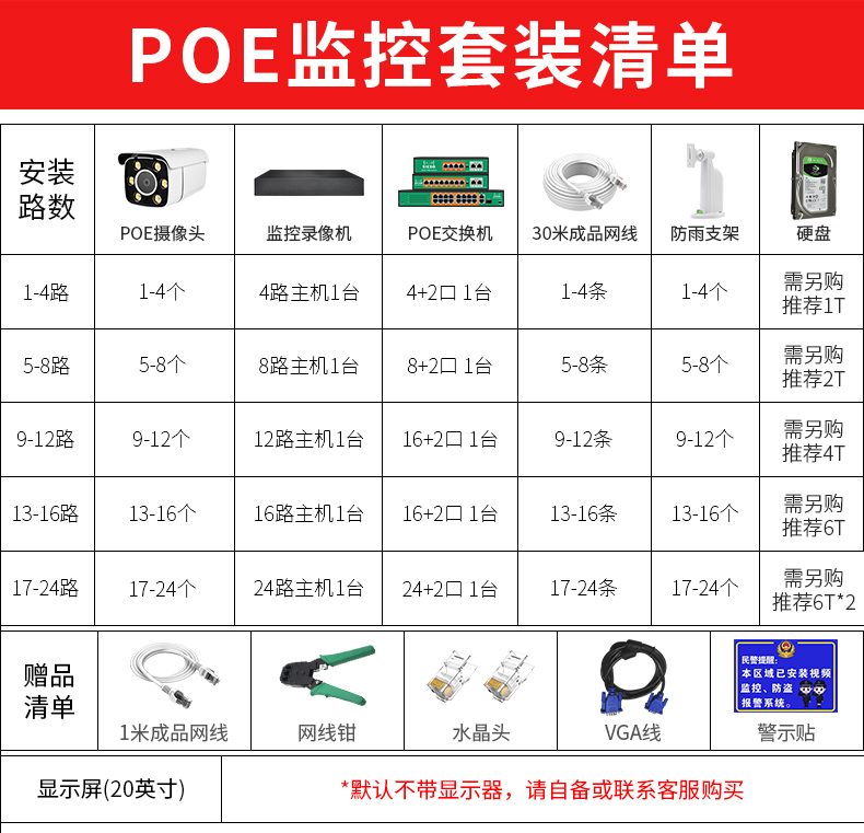 1 POE camera Videotape Recorder P O E SWITCH 1 Bar 30 m Mesh Routes BRACKET SMART NIGHT VISION Scene ten Soundtrack P O E digital surveillance (2-way suit) Intelligent night vision