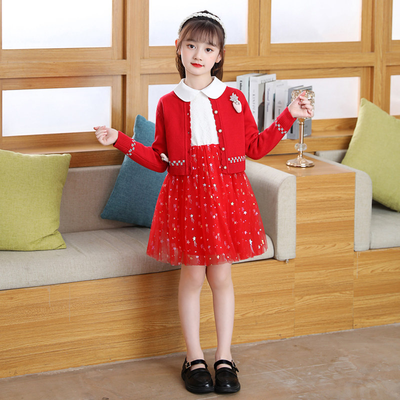 Girls dress dress 2021 new autumn and winter children's sweater thick winter dress foreign-style knitwear dress two-piece