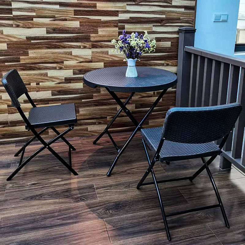 Outdoor Imitation Vine Choreography Table And Chairs Folding Round Table Small Square Table Casual Outdoor Open-air Patio Balcony Tea Table And Chairs Combination