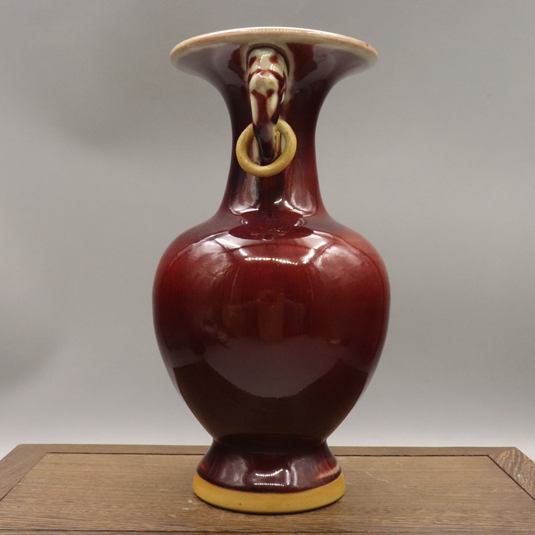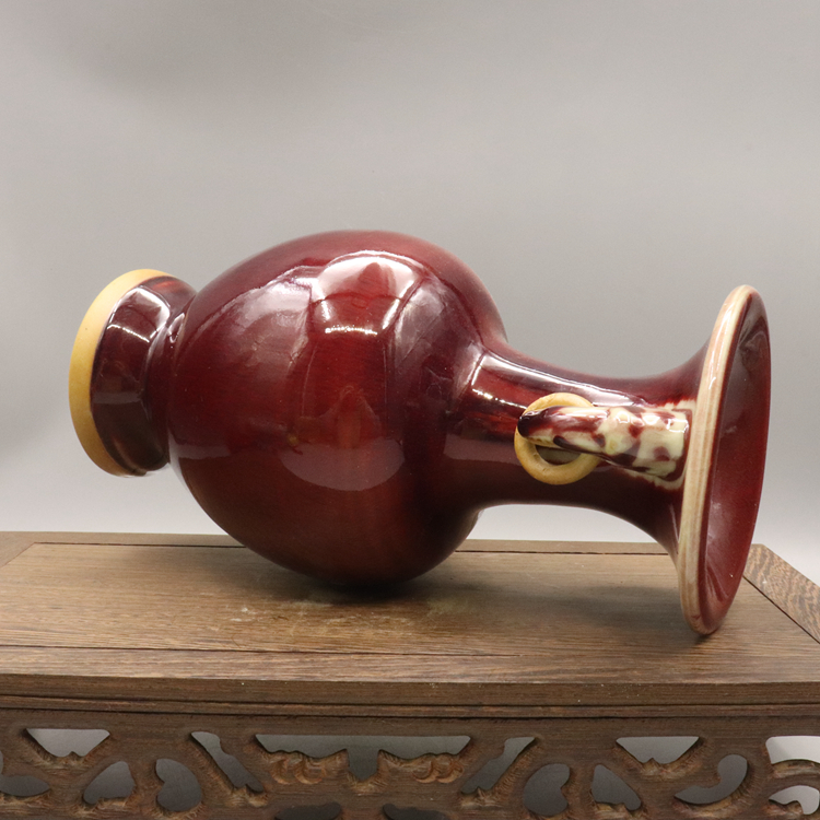 Song Jun Kin red glazed double ear bottle Antique antique porcelain home living room decoration decoration collection