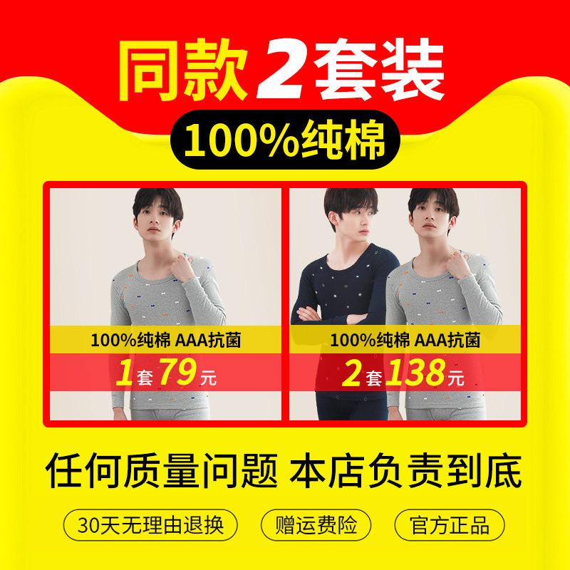 Hengyuanxiang autumn underwear men's cotton sweater youth antibacterial sanitary pants winter thin heating underwear
