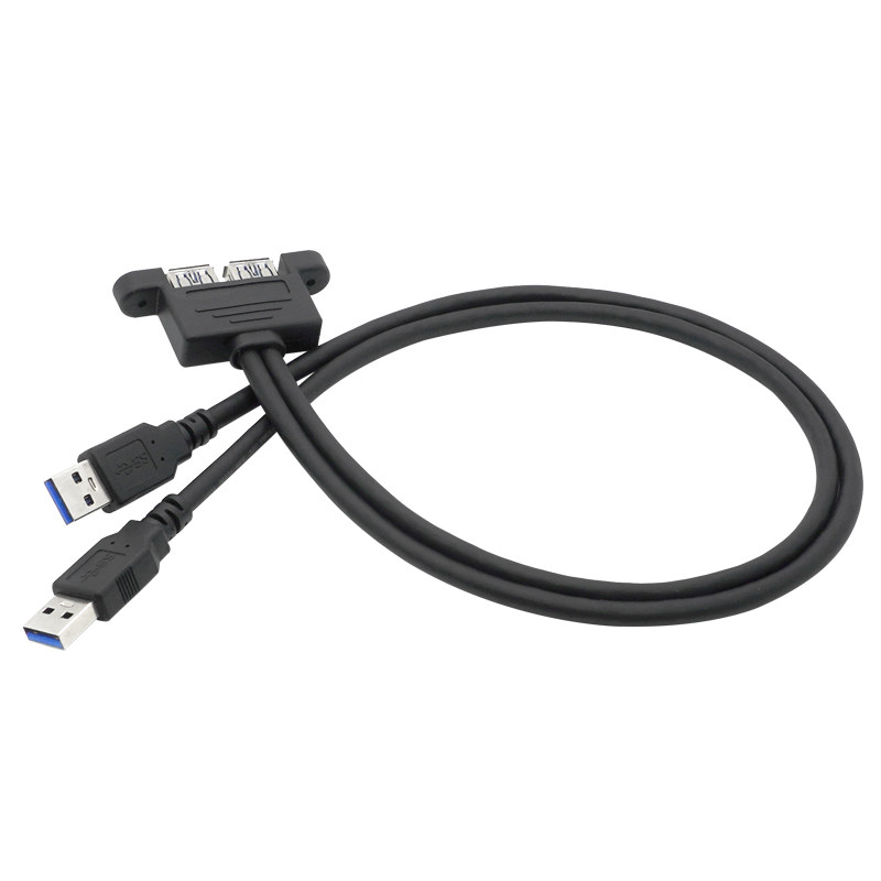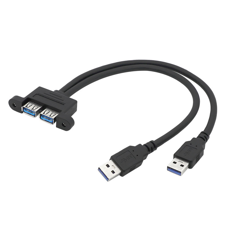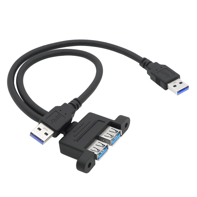 Double USB3 0 - km-to-mate extended line with screw hole dual - mouth USB3 0 rotary transfer wire external conversion line