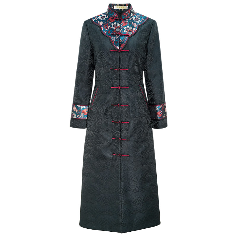 Chinese classic clip cotton qipao jacket 2021 autumn and winter Chinese style retro to the overwork to thicken the dress and the woman