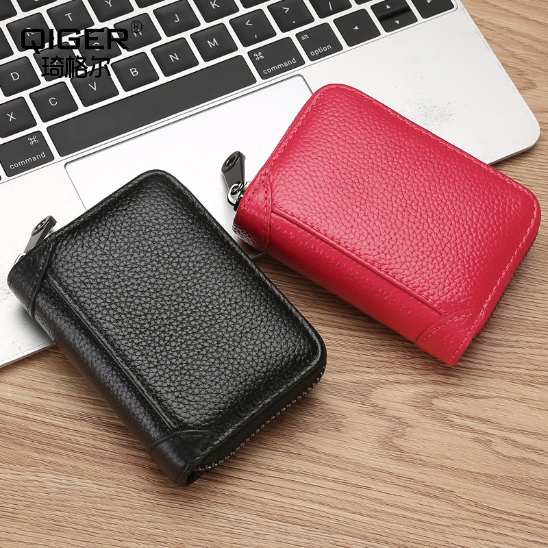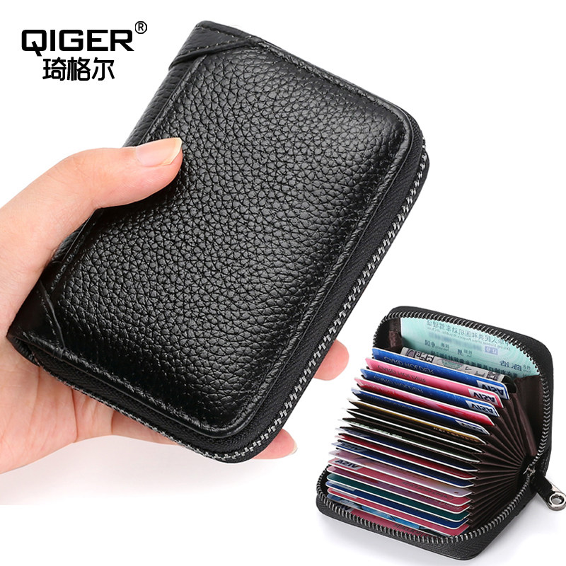 Genuine leather card bag male anti-magnetic upscale card holder ultra-thin burglar-proof brush document card bag large-capacity female cutting sleeve small