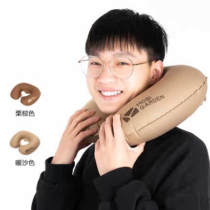Press-type inflatable U type pillow-warm sand color pressing inflatable U type pillow-chestnut brown