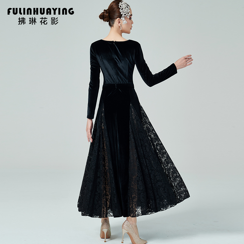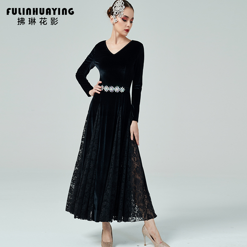 Marlene Flowers National Benchmark Dance New Silk Suede Morden Dance Dress Social Dance Practice Dress Thickening Korean Suede Dress