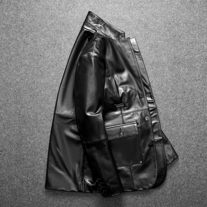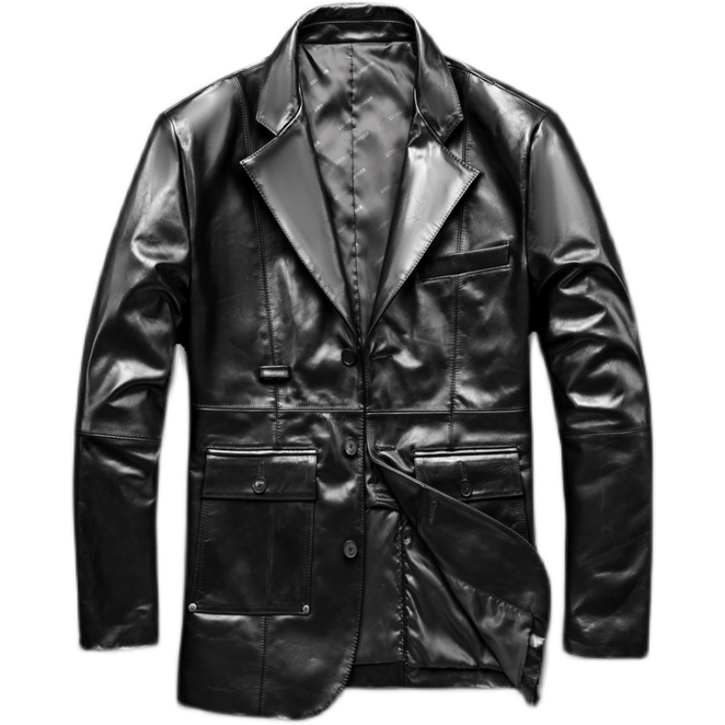 Young Genuine Leather Big Size Import Head Layer Cow Leather Fat Leather Clothing Male Suit Long Version Windsuit Casual Multi-Pocket Foreign Trade