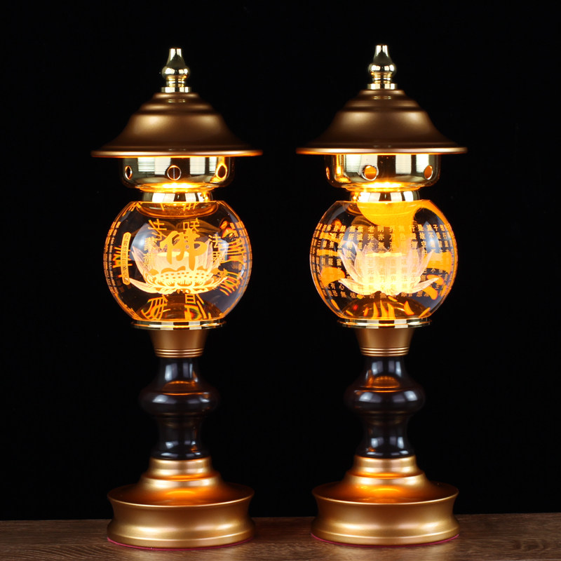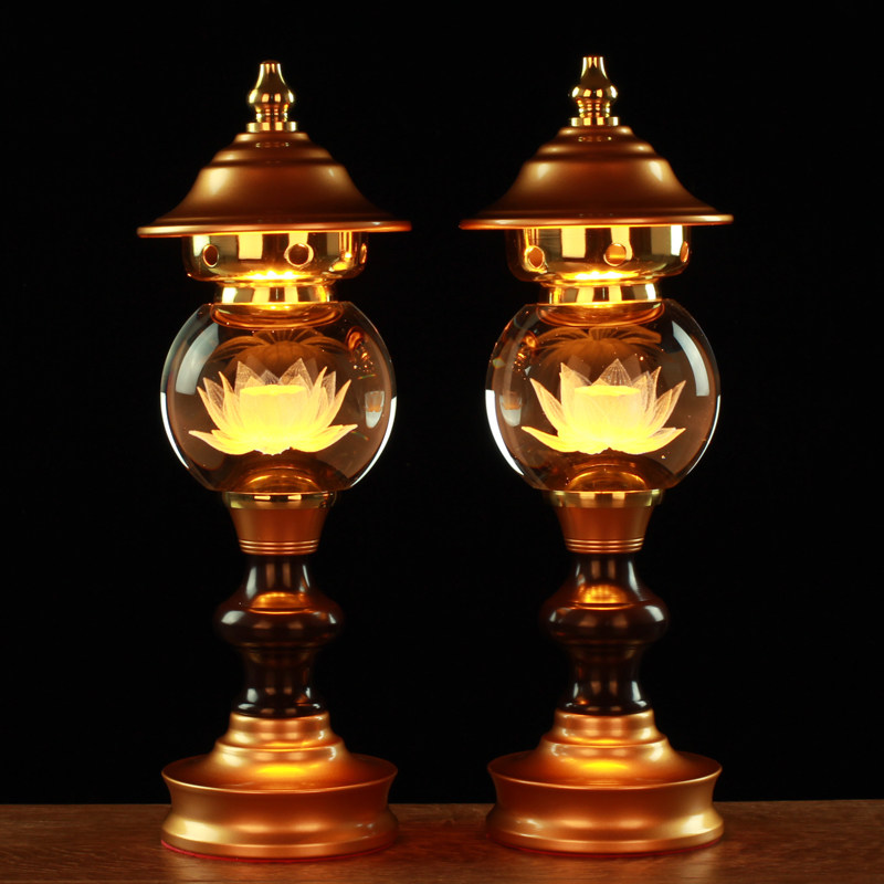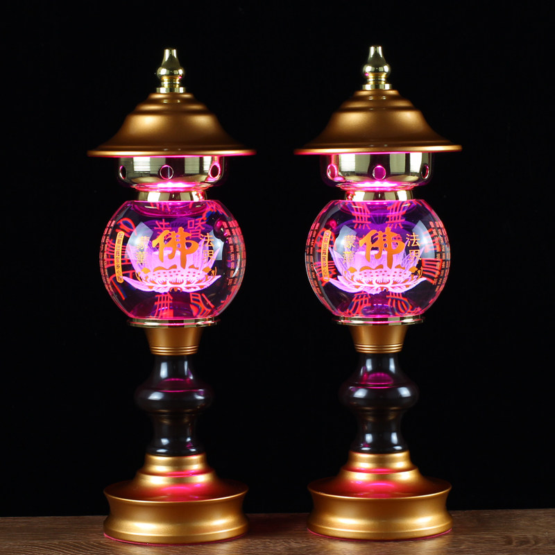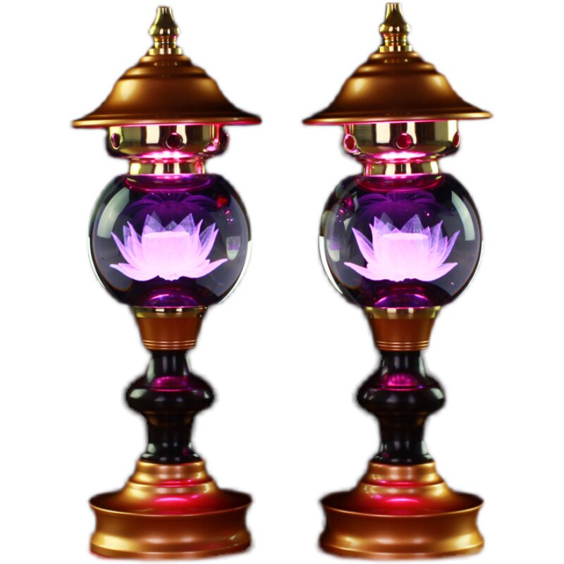 Led seven colored crystal hearts via the Buddha's former Lotus lamp Buddha for the lamp Buddha's mouth Guanyin Guanyin Domestic long Ming lamp plug-in electric pair
