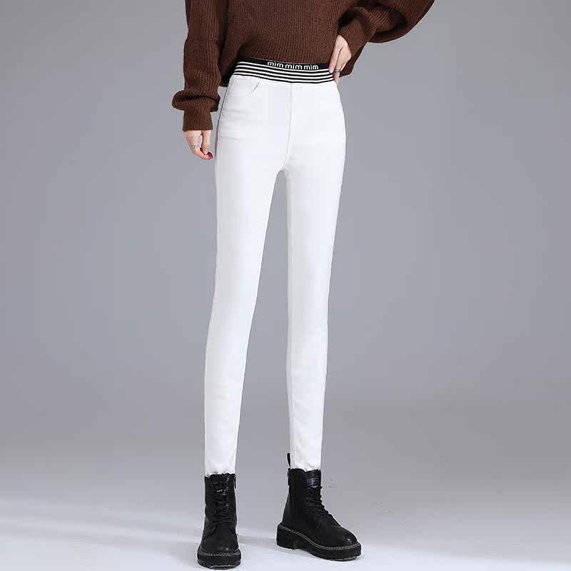 Hong Kong winter high-waisted plus velvet thickened warm white duck down tight-fitting small-footed cotton trousers outer wear thin bottoming down pants women
