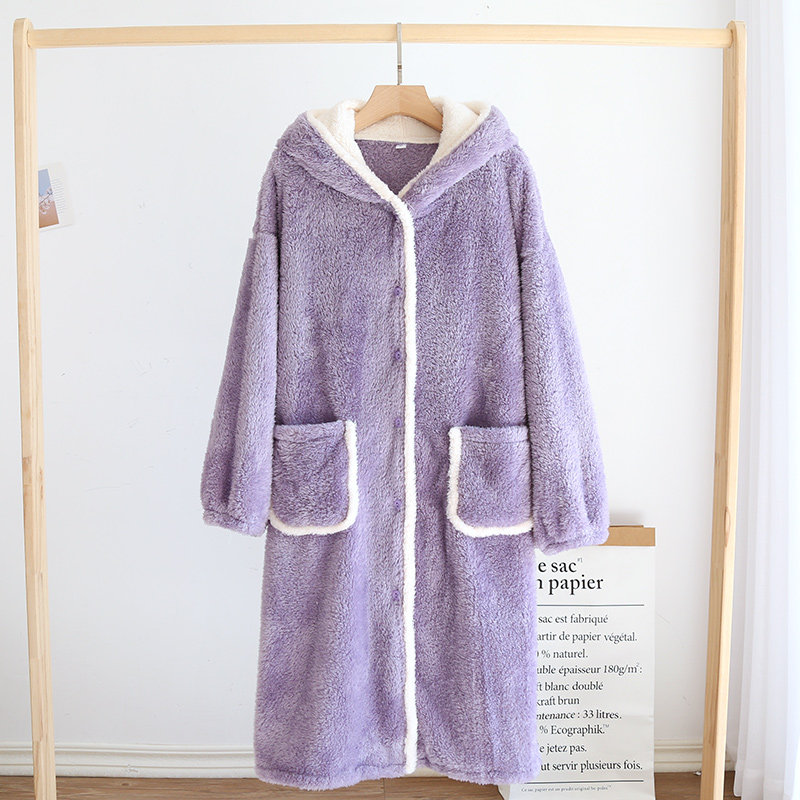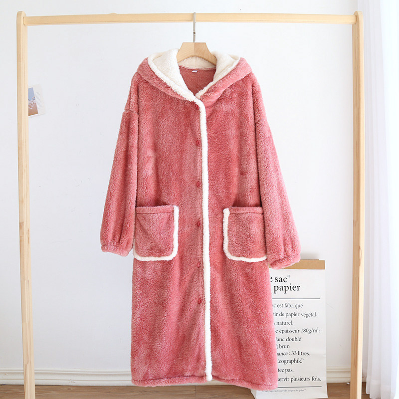 Day Department Coral Suede Sleeping Dress Lady Autumn Winter Thickening large size Pregnant Woman Sleeping gown Long version Lianhood pyjamas dress Bathrobe outside