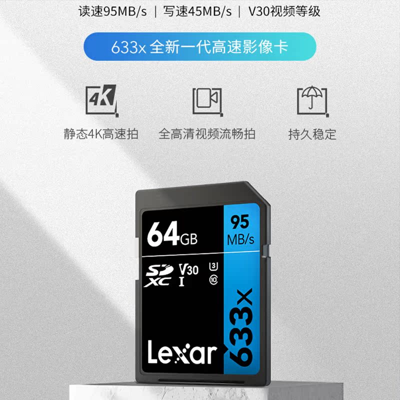 Reksha SD card 64G 633X 95M micro single eye camera anti-high speed 4K memory card digital camera u3 memory card
