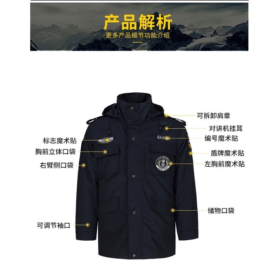 Security work clothes cotton clothes training cotton clothes multi-functional coat property security uniform winter thickening cold clothes men