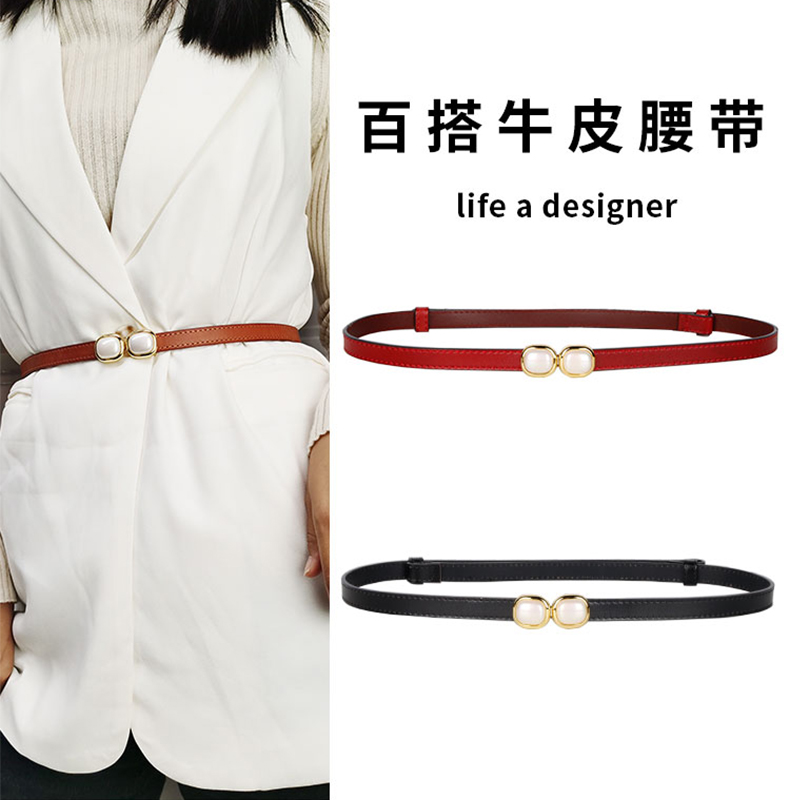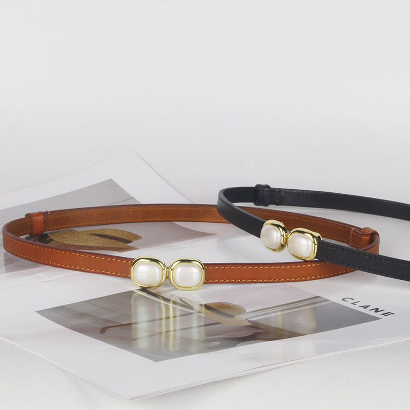 100 hitch genuine leather Decorative Ocean Dress Slim Girdle Girls Shirts Cashew Accessories Skirts Fashion Trend Pearl Small Leather Strap