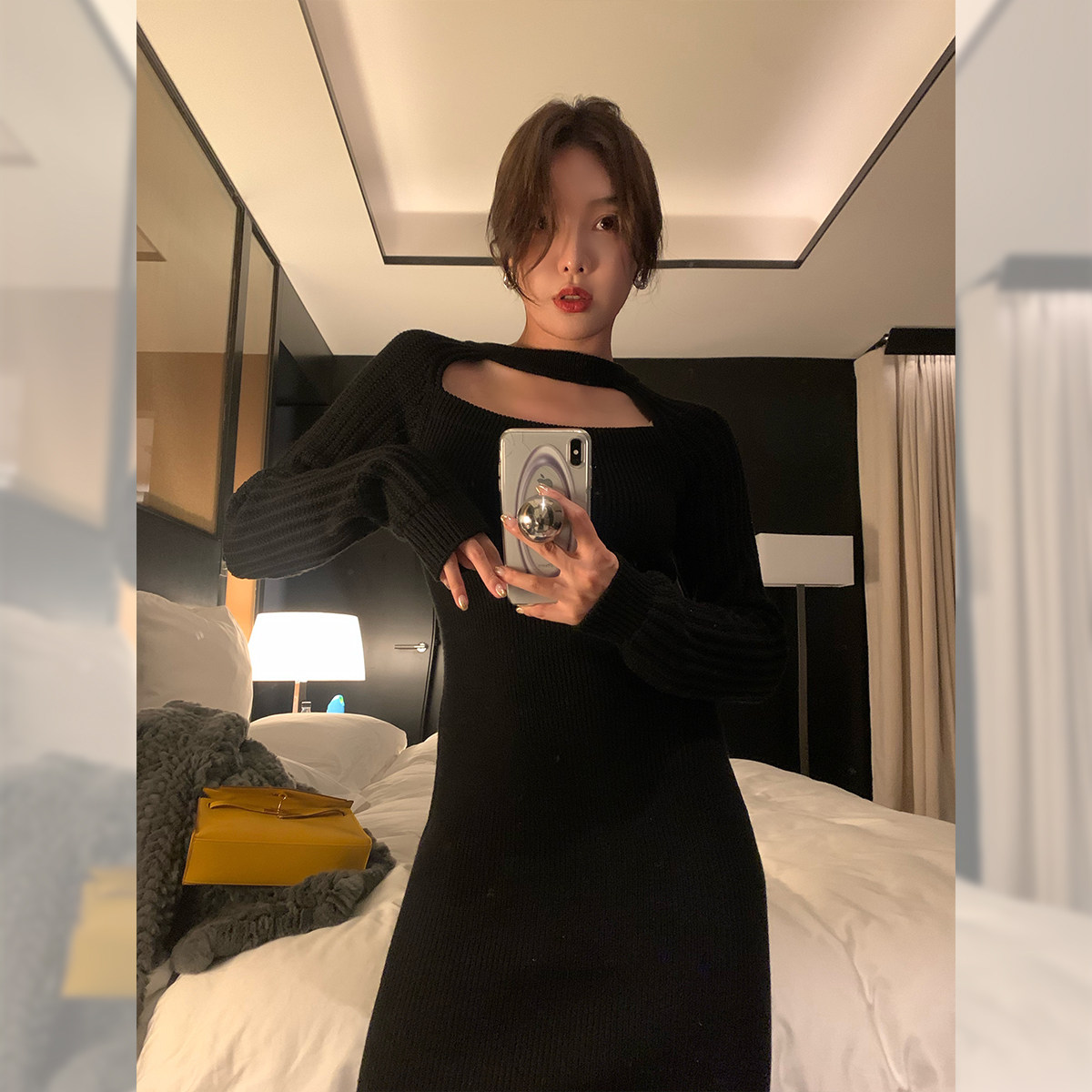 (Spot) Shi Weiliang Jinkou Basulan Wool ~ Structured Hollow Knitted Sweater Sweater Dress