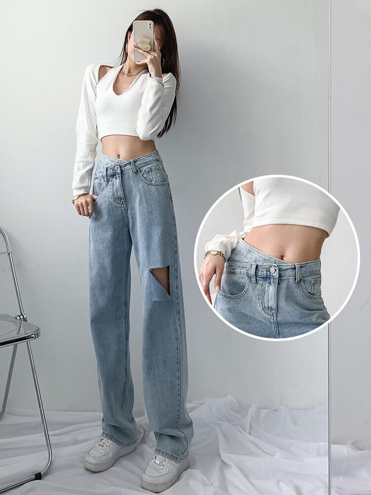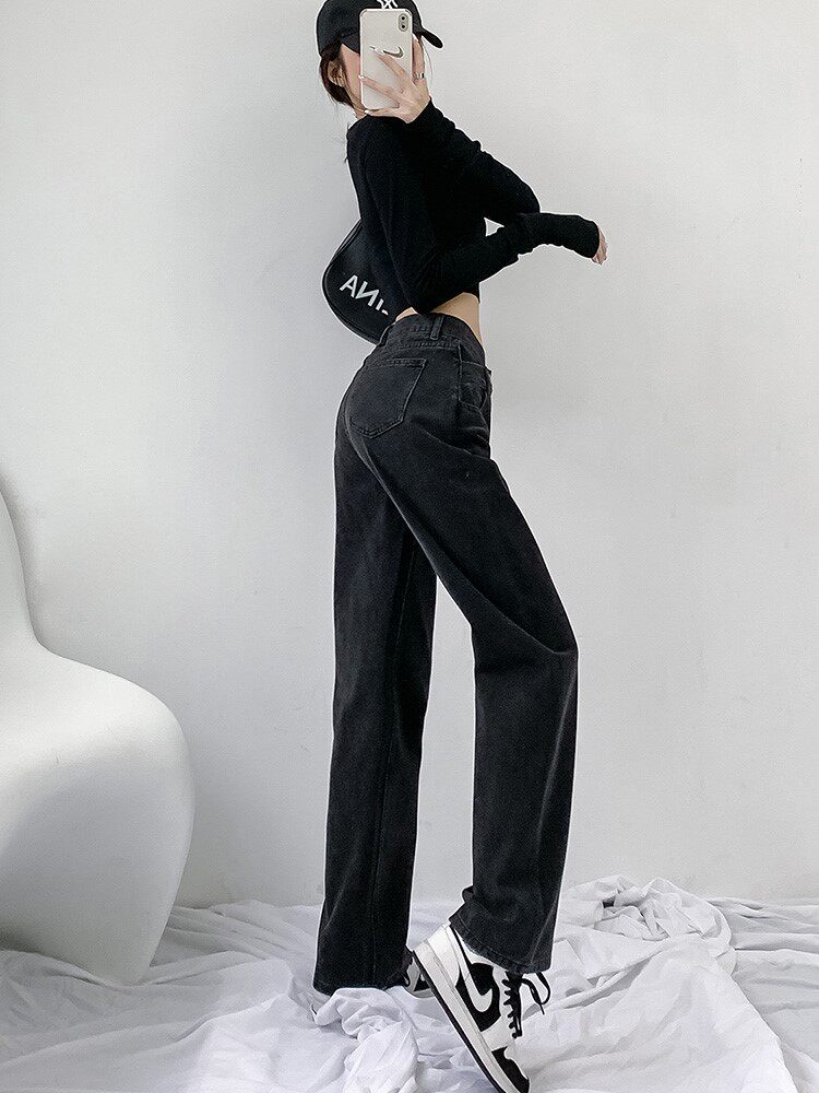 Black grey jeans female high waist straight cylinder loose with slim Han version autumn and winter plus suede design sensation lengthened drag underpants tide
