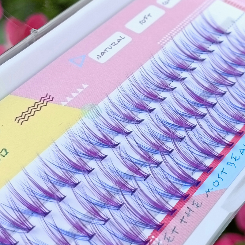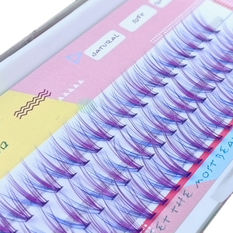 Blue and purple mixed color hair self-grafting eyelashes single cluster natural thick colored eyelashes 20 stage COS hair