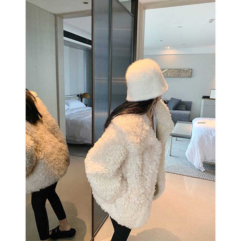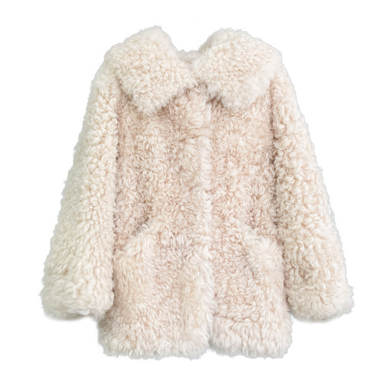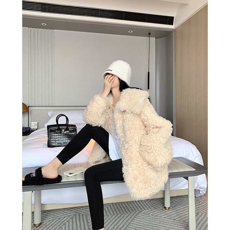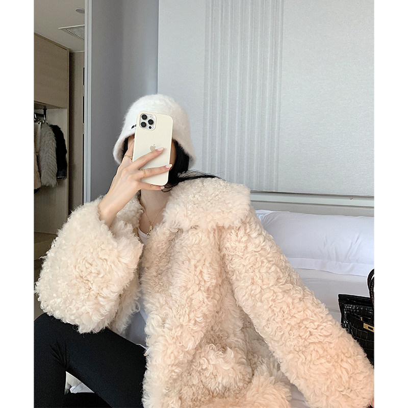 2022 New imported sheep roll medium - long Tuscan fur coat female coat of lamb fur
