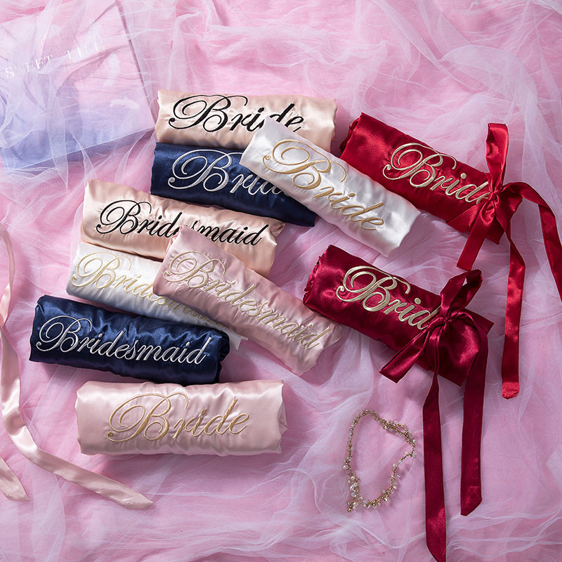 Bride and bridesmaids group custom morning gown wedding wedding boudoir honey embroidery pajamas lying autumn and winter red nightgown nightdress female summer