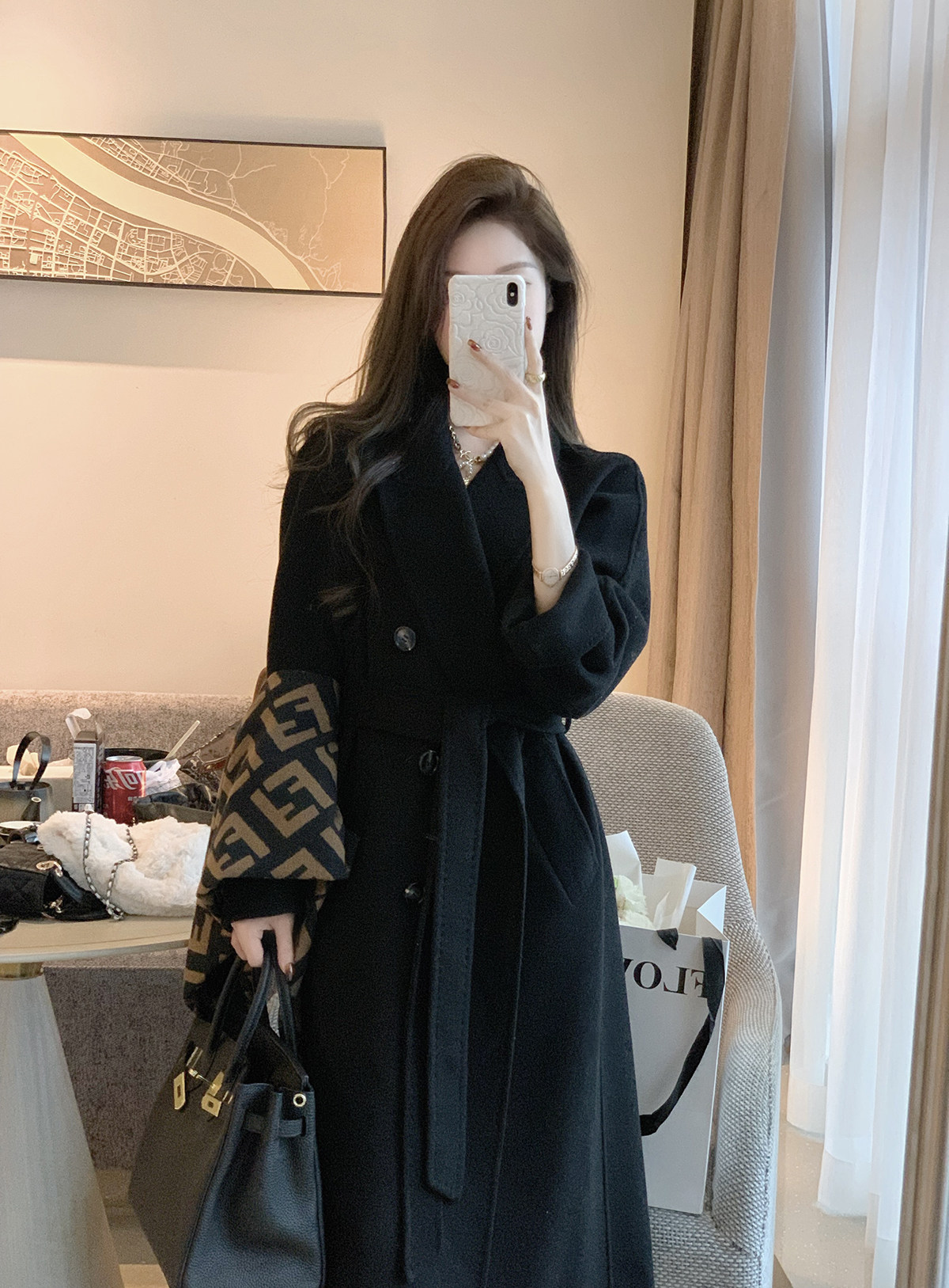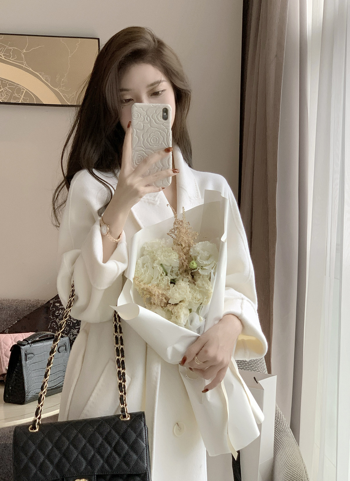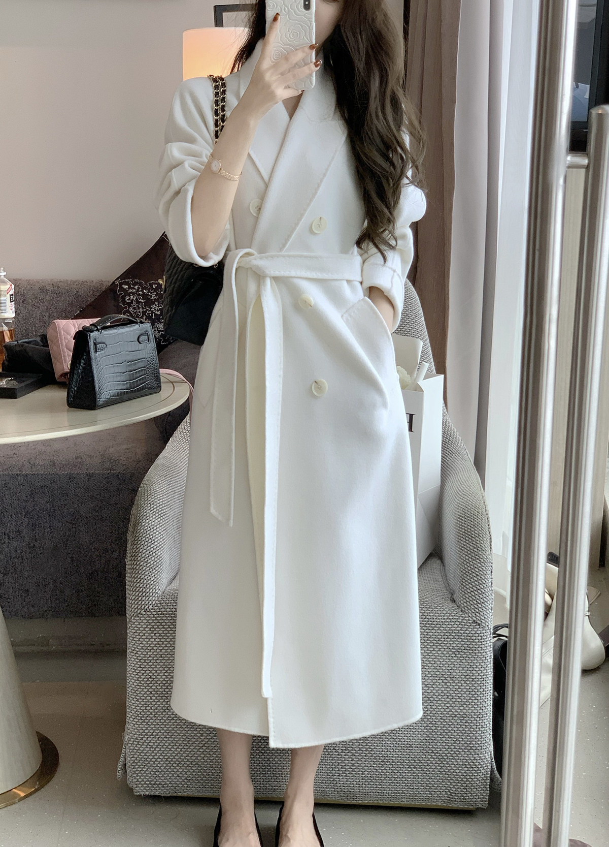 JustQin Rome early morning Quan wool coat 2022 autumn and winter mid-length double-sided woolen white coat coat