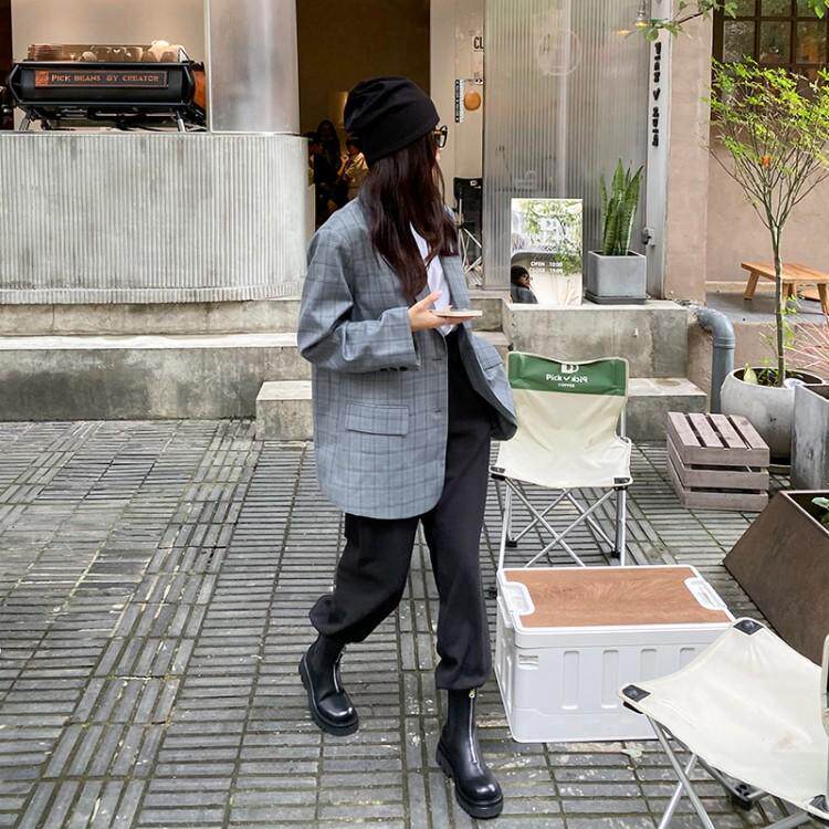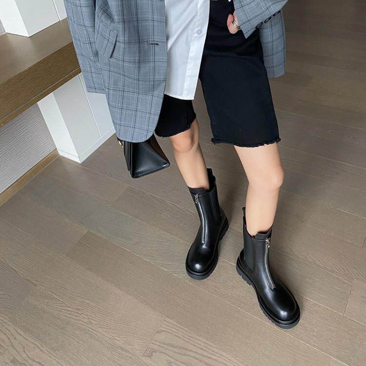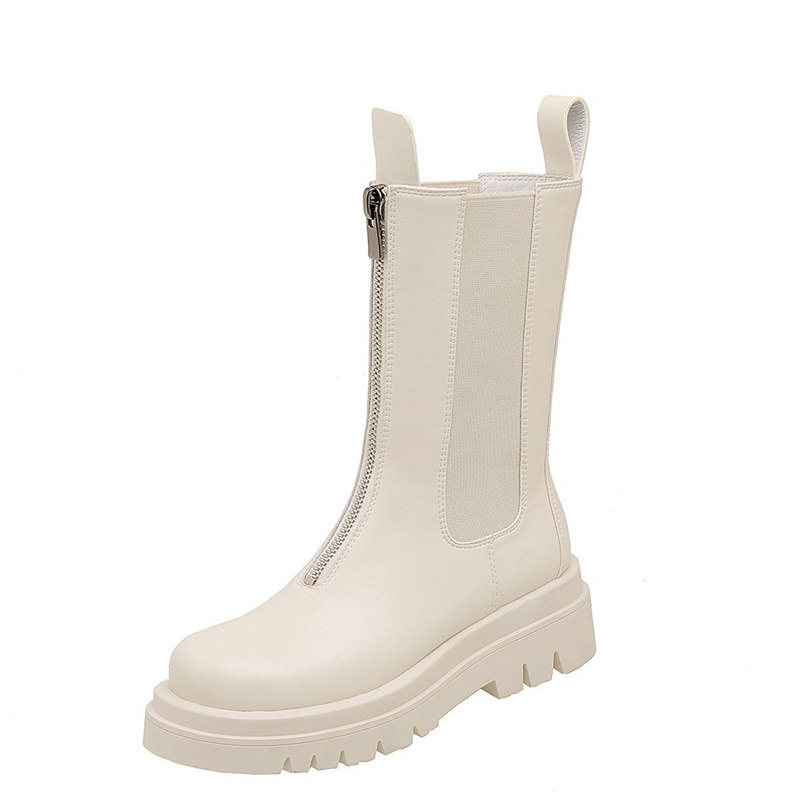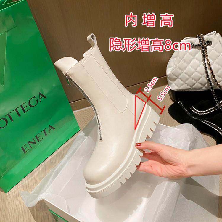 Leather inner heightening martin boots women's mid-boots front zipper white Chelsea ankle boots thick bottom mona chimney boots