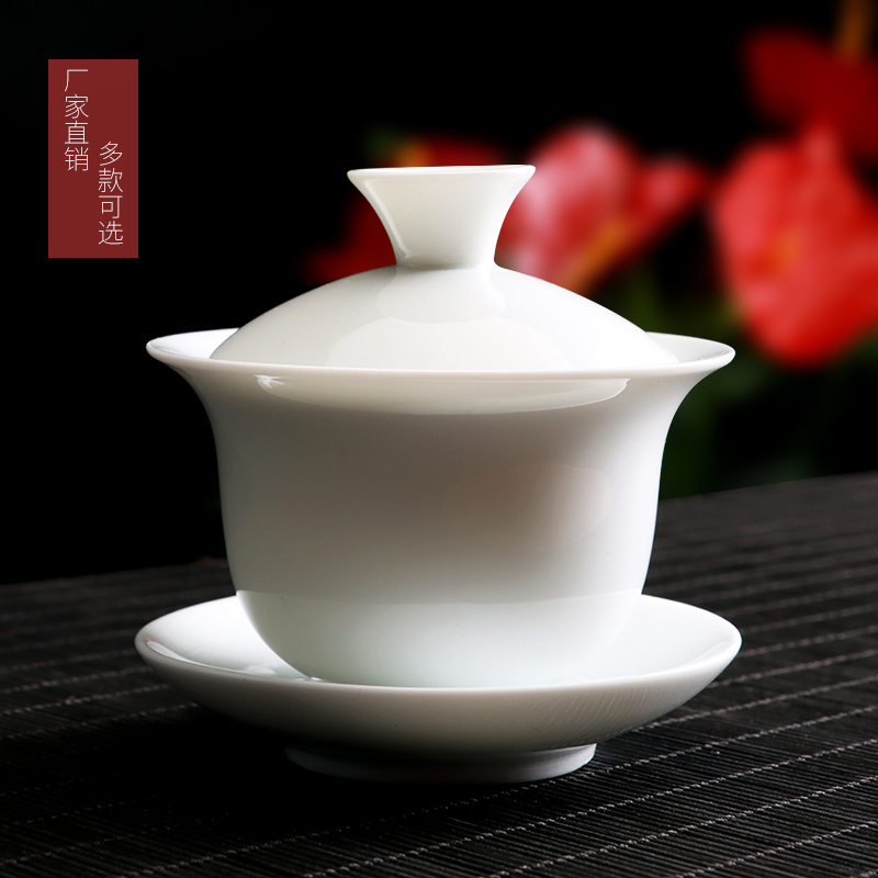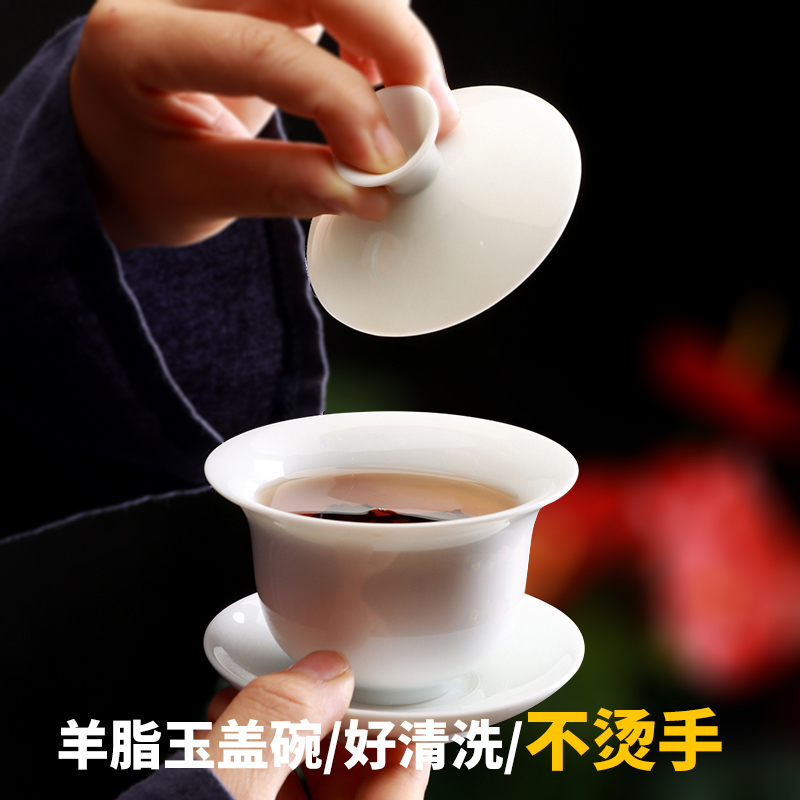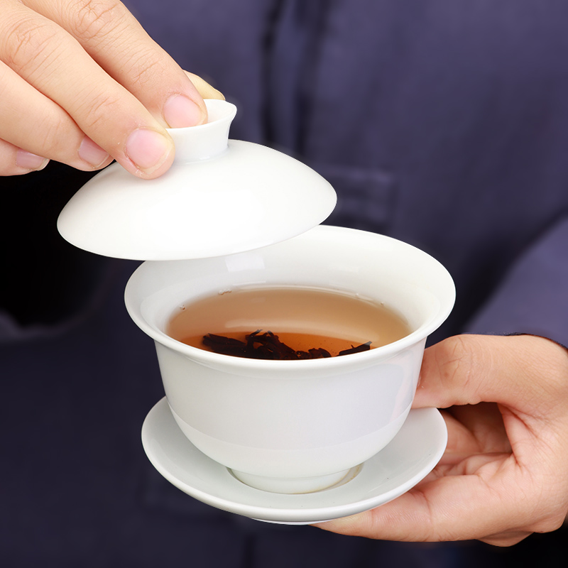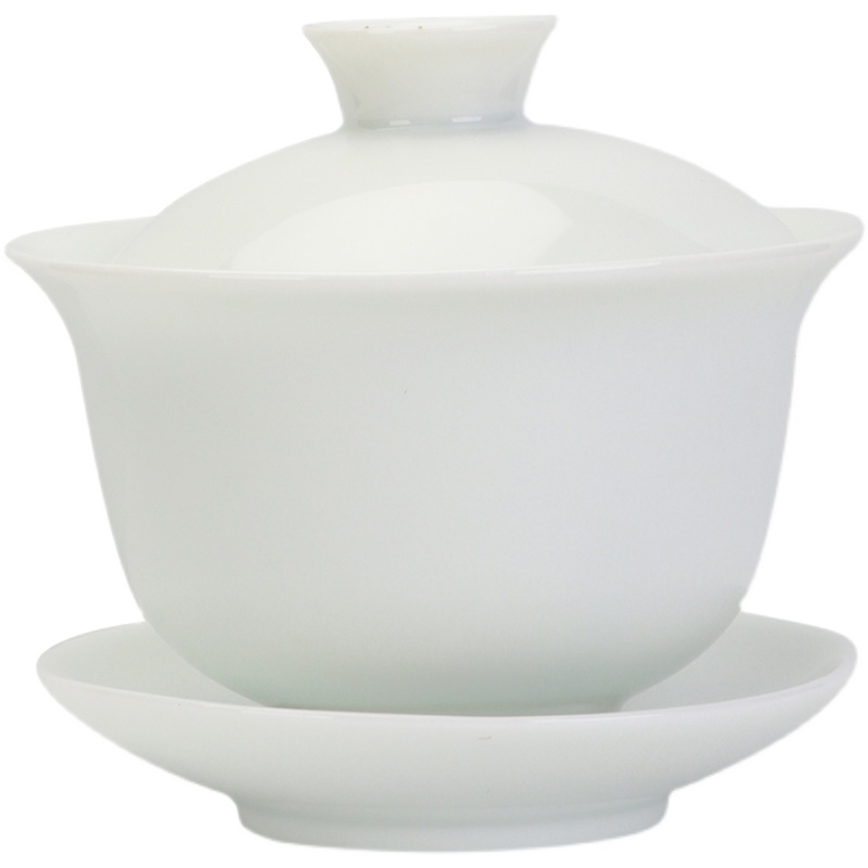 Tea set high white porcelain cover bowl anti-scalding set household tea cup with gold painting whole set of tea maker large pure white porcelain toast tea