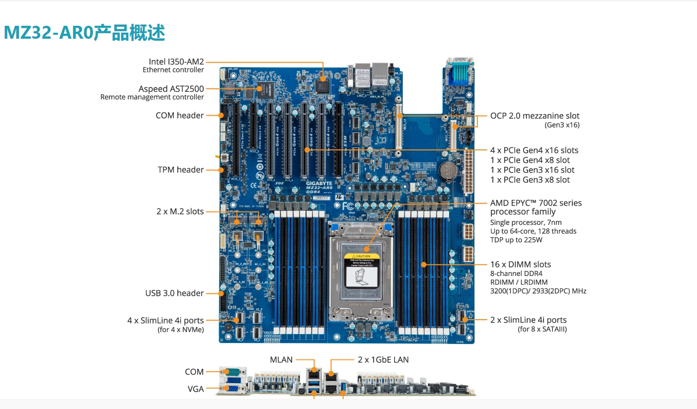 MZ32-AR0 PCI-E4 0 IPFS single-way server motherboard AMD7763 3950x 7742 7313p