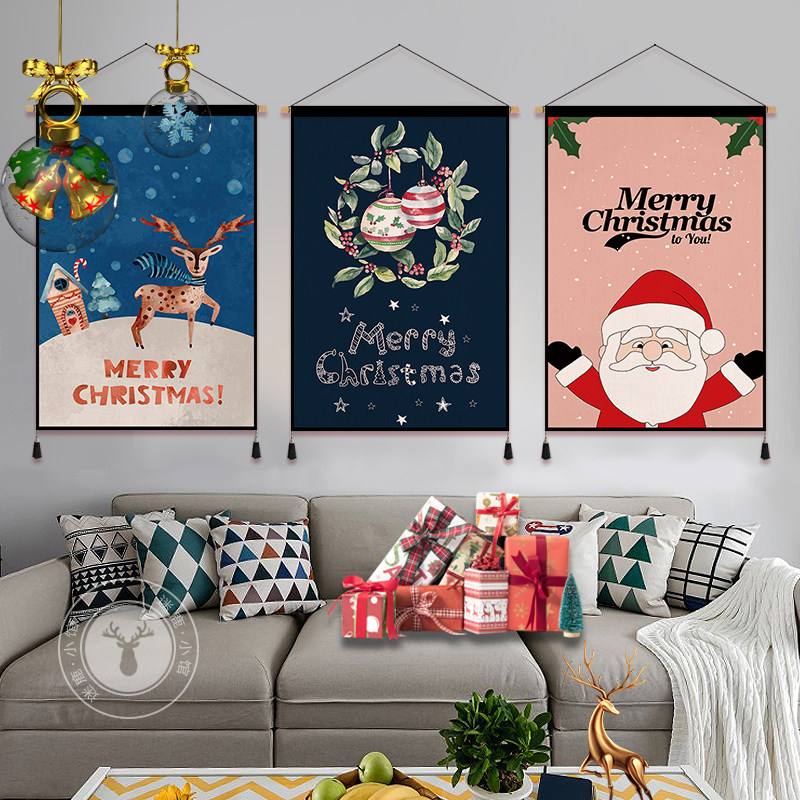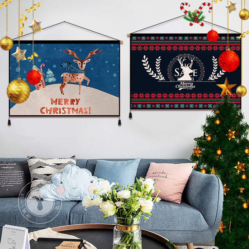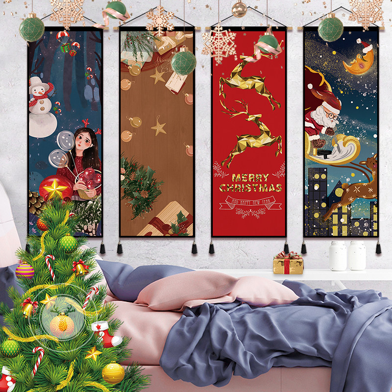 2022 new Christmas tapestry background wall hanging painting store holiday decoration hanging painting electric meter box to cover the room hanging cloth
